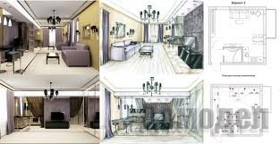 Следующий этап –на этом этапе обсуждаются цвета, планировка, внешний вид потолка, мебель, отделка, электрооборудование.