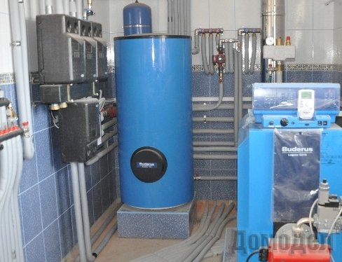 Чаще всего для обеспечения автономным отоплением многоэтажного дома используют газовые двухконтурные котлы. Бывают они настенными и напольными. Настенный котёл позволяет обогреть помещение площадью до 300 кв.м. Всё необходимое для монтажа находится внутри агрегата, что даёт возможность сэкономить свободное пространство. Данный вид установки не нуждается в отдельном помещении и в специальных напольных площадках. В состав данной установки входят: система безопасности, один или два циркуляционных насоса, манометр и термометр. Отопительная система, основой которой является напольный котёл, отличается более высоким КПД, чем котельные системы с настенным агрегатом. Такие котлы мощнее, но при этом и стоимость их выше.