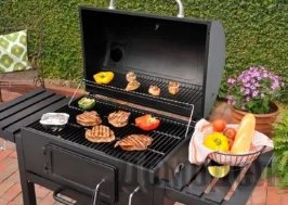 Третий вариант — угольный гриль. Обычно он изготавливается из стали или чугуна. Грили с толстыми стенками считаются лучшим вариантом, потому что они способны выдержать высокие температуры. Данные модели оснащаются емкостью для угля и решеткой для жарки. Регулировать температуру жарки можно с помощью решетки, которую можно регулировать по высоте. Современные модели имеют различные отсеки для хранения нужных вещей и раздвижные столики. Это очень удобно использовать во время путешествия. Еще одна интересная опция на некоторых подобных моделях — колесики вместо ножек, с помощью которых можно с легкостью перемещать гриль.