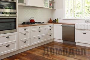 Как можно заметить, не каждый материал сможет качественно случить в кухне, особенно если вы захотели применить для отделки паркетную доску. В таком случае нужно помнить, что приобретать паркет стоит только в пометкой "для кухни".