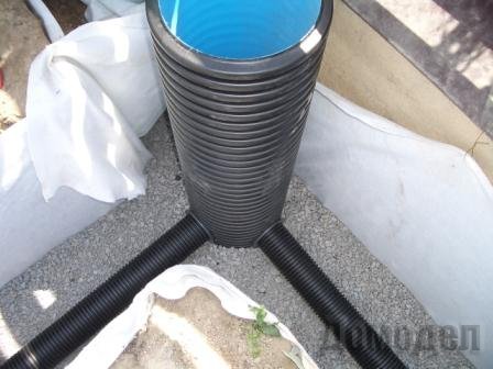 По возможности, рекомендуется установить сливной колодец, как на входе дренажной системы, так и на выходе из дома. Это обеспечит быстрое удаление жидкости от подпольного пространства. Таким образом, не будет создаваться ситуации, при которой от сырости гниют доски. Ведь задача дренажа, это защитить фундамент от намокания, а вместе с ним и стены дома. Они будут сыреть быстрее, если еще и окажется, что бетон пористый. Его структура, как губка впитает влагу и передаст ее через гидроизоляцию на каркас здания.