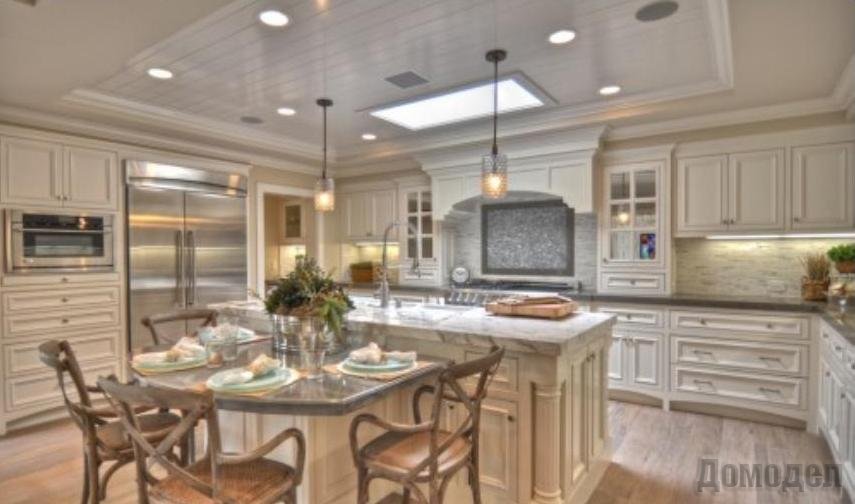Для классической кухни, бесспорно, можно выбрать сатиновые или матовые фактуры. Вместо декоративной ленты используются полиуретановые галтели.
