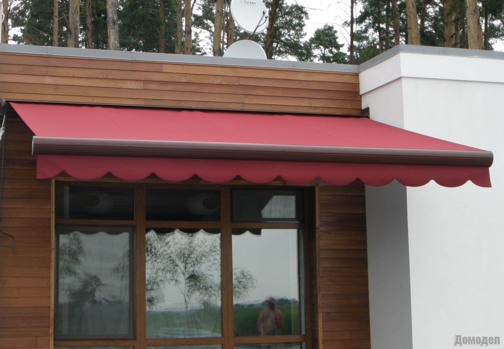 Она гарантирует не только эффективную защиту от лучей палящего солнца, но также имеет достойный вид на фасаде. Как правило, чаще всего используется с целью затенения входной двери и окон.