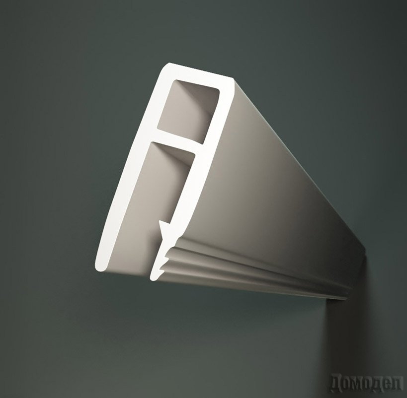 Как vash-potolok.ru, потолочный багет крепится непосредственно к потолку и изготавливается преимущественно из алюминия. Он хорошо гнется, поэтому подходит для монтажа в труднодоступных местах. Специальный алюминиевый профиль одинаково подходит как для крепления на потолке, так и на стене. Существует отдельный профиль-сепаратор, используемый для соединения двух полотен натяжного потолка в больших помещениях.