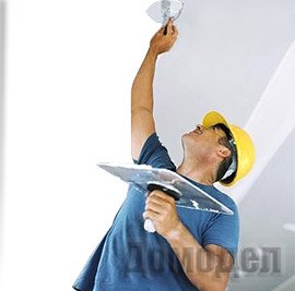 Можно начинать наносить грунтовку, делая это после очищения поверхности. И как только она высохнет, можно начинать выравнивать поверхность потолка. Сделать это вы сможете, как при помощи шпаклевки, так и при помощи штукатурки. И тогда можно наслаждаться правильно выполненной работой.