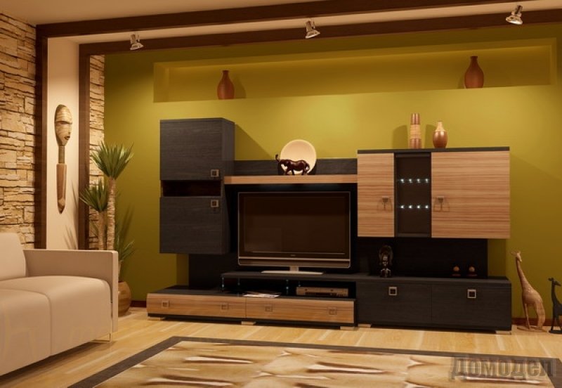 Для малогабаритных гостиных не рекомендуется выбирать стенки и шкафы, которые сильно загромождают и без того малое пространство. Лучше обратить внимание на современные подставки, оригинальные полочки, которые не только увеличат пространство, но и наполнят комнату оригинальностью и стилем.