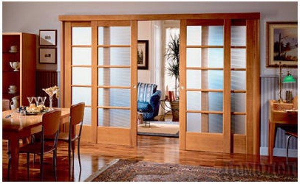 Данная дверная конструкция является настоящим презентом для тех, кто любит все оригинальное. Состоят такие двери из отдельных секций. Между собой данные секции совмещены пружинами из стали, которые прикреплены к планкам шарнирным. Кстати, раздвижные двери еще именуют дверями-купе. При открывании такие двери лишнего места не занимают. И это является их основным плюсом. В случае небольших пространств раздвижные двери очень сильно выручают, а где-то они даже являются единственным возможным решением.