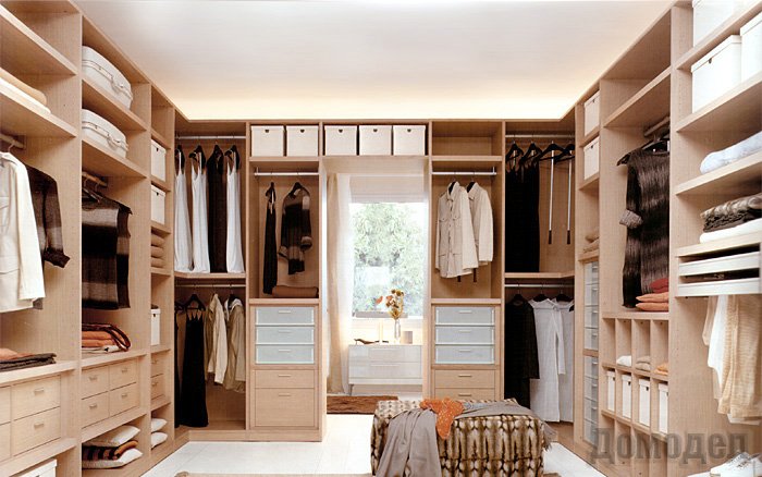 К особенностям гардеробной комнаты можно отнести в первую очередь большую вместительность, что позволит легко размещать в ней огромное количество различных предметов одежды, вне зависимости от материала и формы.