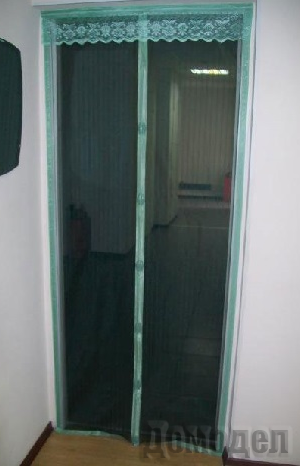 Простым видом штор от насекомых является сетчатая занавеска, закрепленная на карнизе, который устанавливается над входной дверью. В нижнюю ее часть вшиваем камешки, они не позволят занавеске шататься от ветра и сквозняка.