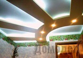 • Подвесная конструкция с использованием гипсокартонных плит. Наиболее распространенная модификация покрытий. Обладает повышенной устойчивостью и длительным сроком использования. Гипсокартон не рекомендуется устанавливать в санузлах и на кухне из-за неустойчивости покрытия к высокой влажности. Однако материал признан одним из самых прочных и долговечных.