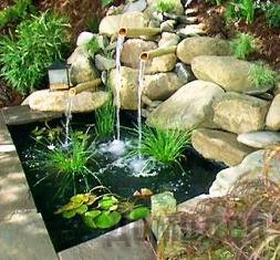 Не на каждом садовом участке есть возможность возвести собственный водоем. Здесь можно установить искусственный фонтан, работающий на электроэнергии. Такие фонтаны обычно отличаются небольшими размерами. При правильном подходе их можно красиво задекорировать, используя гальку и цветущие растения. Искусственный фонтан отлично подойдет для небольших садовых участков.