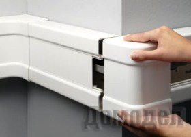 • Современным способом установки кабеля электропровлдки внутри помещения является его монтаж в специальный короб. это может быть настенный или потолочный плинтус со специальным отверстием для кабеля или декоративная планка-короб.