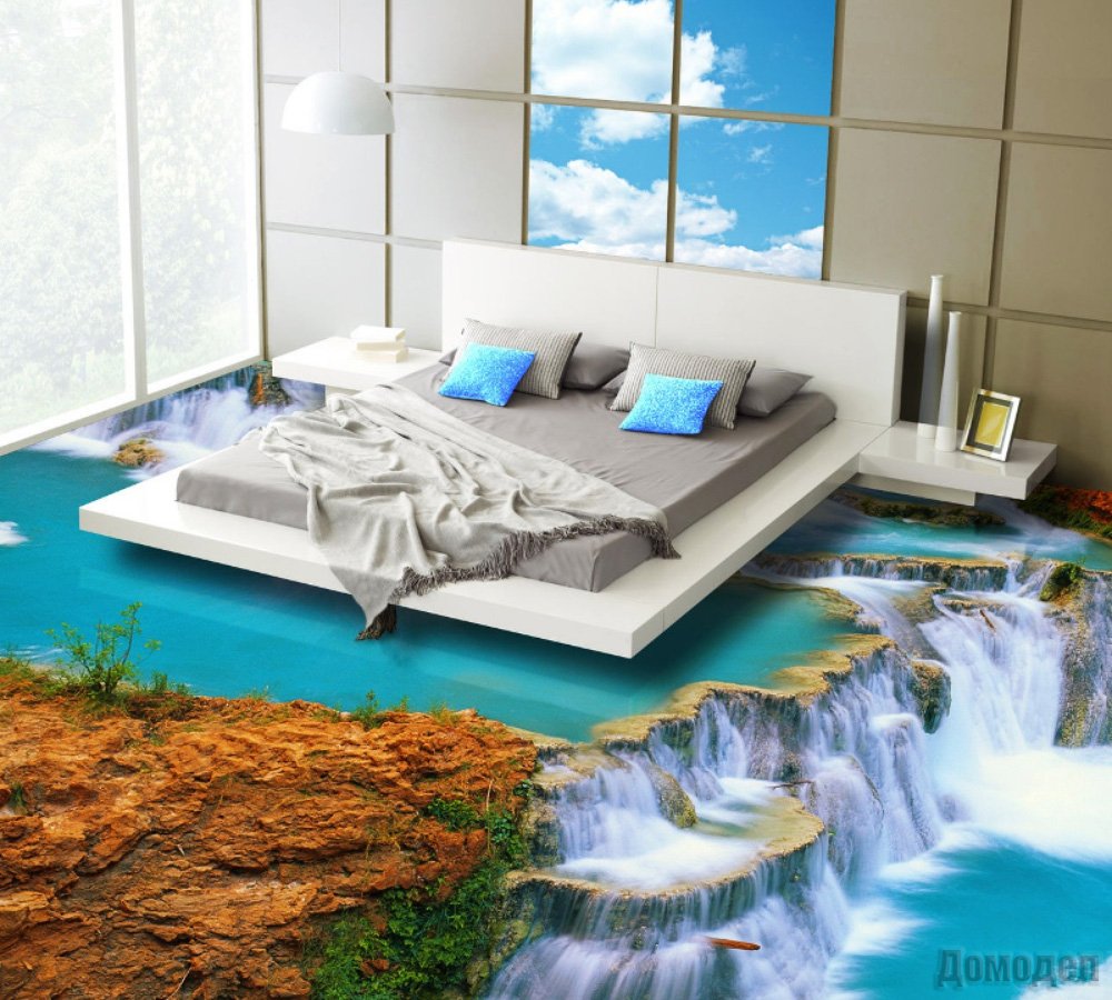 В последнее время такие полы с развитием технологий получили новое применение, теперь уже в жилых помещениях: на их базе стали создавать 3D полы. В этих полах под прочным прозрачным полимерным слоем находится 3D изображение. Такой способ отделки помещения позволяет создать неповторимый дизайн.
