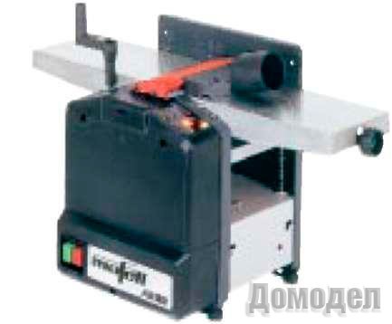Габариты аппарата скромные, поэтому ширина строгания невелика, и большая мощность двигателя была бы не оправданна - 900 ватт достаточно. А вот снижать частоту вращения вала причин нет, да и скорость подачи при рейсмусовании стандартная. В итоге производительность не хуже, чем у «полноразмерных» станков. Максимальная глубина снятия материала также не выбивается за привычные рамки.