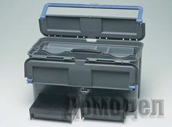 Хорошо известны и профессионалам, и любителям открытые переносные ящики семейства Compact — так называемые Open Toolbox c тремя объемными отделениями, вставками для мелких расходных материалов и с длинной трубчатой ручкой, в полости которой есть гнезда для хранения самых мелких предметов. У «Тулбоксов» предусмотрена возможность подвески дополнительных ящичков. Стоимость: 14,3.