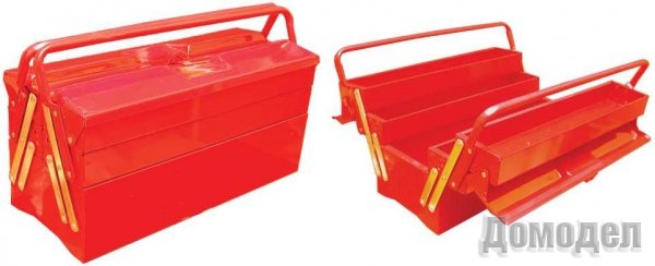 Все изделия красят методом электростатического напыления в красный цвет. Внутри — одна или несколько секций, разделяемых пластиковой вставкой. Есть «рядовые» модели с переносным лотком, а есть такие, что устроены наподобие «книжки», когда крышка, состоящая из двух половинок, открывается, раскладываясь на две стороны. При этом благодаря особым свойствам створки «тянут» за собой неглубокие выдвижные отсеки, которые при закрытом ящике формируют его боковые стенки. Отделы выстланы микропористым поролоном. Створки крышки по центру слегка изогнуты и имеют отверстие для навесного замка.