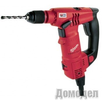 Дрель двухскоростная, поэтому справляется с разными «миссиями». Мощности 750 Вт хватает и на «тугие» шурупы, и на узкие отверстия — их она сверлит быстро (максимальная скорость 3400 об/мин) Инструменту под силу 40-миллиметровые отверстия в древесине. Наличие ударного механизма делает машину боеспособной при работе с бетоном.
