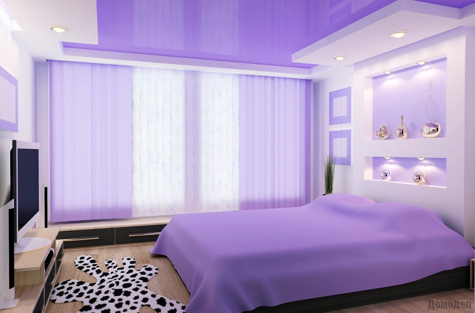 Выполняя ремонт и осуществляя монтаж натяжных потолков важно не забывать про освещение, которое играет важную роль. Применение небольших точечных светильников совместно с натяжными потолками позволят добиться эффекта звездного неба. Кроме того, иногда натяжные потолки используются для организации украшения стен, становясь, таким образом, главной изюминкой интерьера помещения.