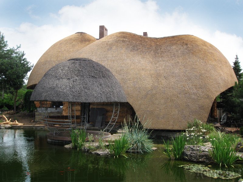 Не столь часто, но все же, к камышовому покрытию часто добавляют черепицу, дерево и прочие материалы. Дерево используют длясохранения крыши.