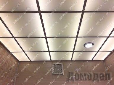 Стеклянный потолок – это подвесная система, состоящая из металлического каркаса и листов обшивки, крепящихся на него. Панели могут быть из обычного матового, витражного, силикатного и акрилового стекла. Силикатное стекло хоть и не отличается большой прочностью, является идеальным материалом для воплощения сложных дизайнерских задумок, поэтому выполненные с его использованием потолки – это настоящие произведения искусства, превосходно дополняющие величие интерьера комнаты, которые в дороговизне и эстетическом превосходстве уступают только витражным потолкам.
