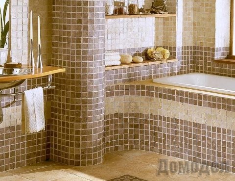 1. Мозаику можно прикрепить к любой поверхности, в том числе изогнутой, подробнее на сайте наших друзей вы можете узнать из полезных статей, а также заказать плитку по разумной цене. Учитывая этот факт, таким материалом можно смело выполнять облицовочные работы любых поверхностей. Также мозаикой можно оклеить колонну или подиум.