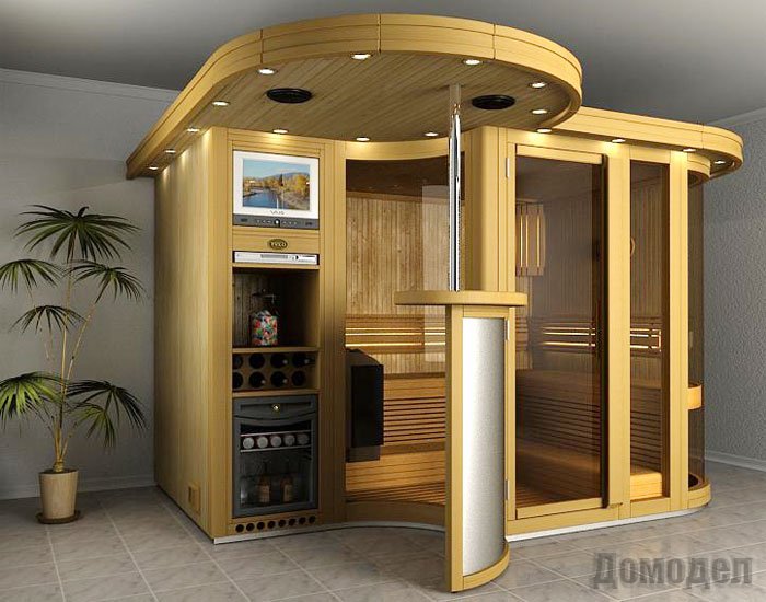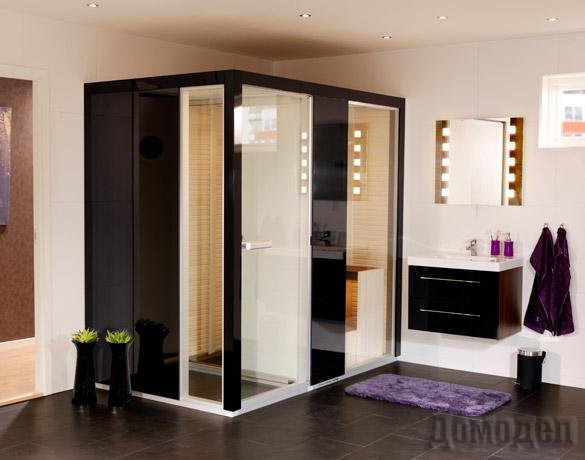 сауны. Многие кабины могут оснащаться даже стеклянными секциями-окнами, благодаря которым уменьшается ощущение замкнутости пространства. Двери в кабинах тоже могут быть целиком стеклянными или сочетают элементы дерева и стекла.