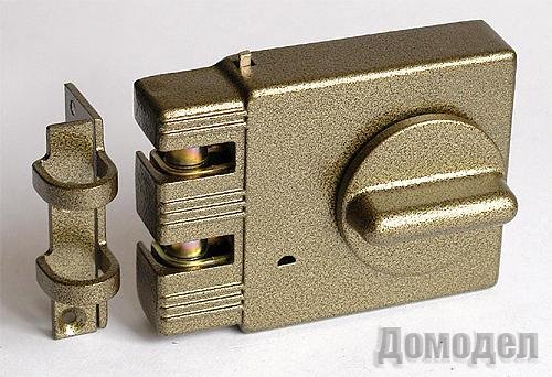 Правда, и устанавливать замок надо умеючи: требуется точно без малейших перекосов расположить встречную скобу на дверной коробке. В противном случае замок откажется долго и верно служить. Изнутри модель имеет запорную рукоятку и «собачку», сигнализирующую о состоянии замка -открыт/закрыт. Корпус замка сделан из стали и окрашен эмалью.