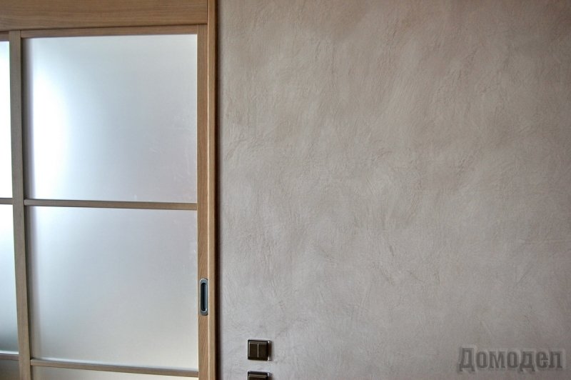Для этого также применяют щетку, но берут меньшее количество материала. После исчезновения блеска краски и до момента полного высыхания при помощи скребка энергично железнят поверхность во всех направлениях (данная методика может быть использована при обработке дверей). Через 12 ч (полное высыхание) наносят воск, подчеркивающий оттенок. Когда воск высохнет, поверхность натирают бархоткой — так придают глянец. Следует обратить внимание, что наносить материал должен один и тот же мастер и начатую стену следует полностью окрашивать за один раз.