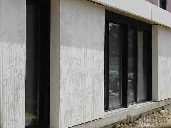 Для этого иллюстрацию сначала сканируют и конвертируют в черно-белую картинку из 256 оттенков серого цвета. По ней задается программа для фрезерного станка с ЧПУ (числовым программным управлением). С модели-позитива изготавливают эластичную структурную матрицу-негатив. Матрицу вклеивают в опалубку и заливают бетоном.