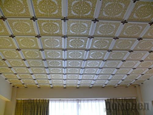 Как оклеить потолок плиткой
