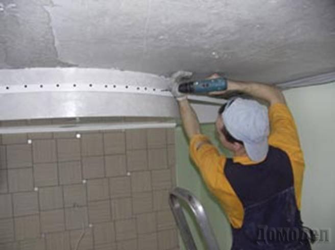 Хоть эта процедура быстрая и безболезненная, однако, для того что бы закрепить багет, необходимо просверлить отверстия в стене, что не лучшим образом сказывается на финишной отделке, пыль плохо влияет на стоящую в комнате мебель. Воздух в помещении разогревается до таких температур для того, что бы полотно стало мягким и могло немного растянуться.