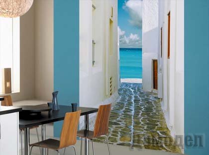 При этом стоит отметить, что во втором случае особое значение имеют фотообои, расширяющие пространство. Эти обои являют собой большие изображения, можно сказать полотнища, которые клеятся на стену. В абсолютном большинстве случаев фотообои расширяющие пространство отличаются очень высокими характеристиками по устойчивости к влажности, истиранию и другим негативам. Клеятся они, как правило, только на одну стену или на часть одной стены помещения.