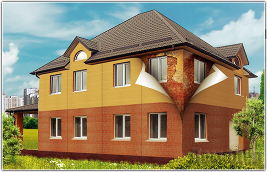 - С помощью этого материала, с легкостью можно отремонтировать фасад старых и непрочных построек;