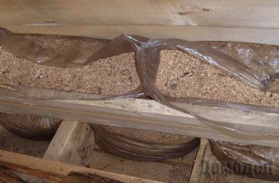 Перед тем, как начать закладывать утеплитель, опилки в соотношении 1 к 8 нужно смешать с цементом. Также важно помнить о том, что нужно выполнить гидроизоляцию, а уже затем поверх гидроизоляции прибиваются доски и засыпается утеплитель.