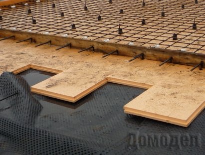 Профилированная мембрана применяется в гидроизоляции, для вентиляции перекрытий в помещениях подземного типа для дренажа стен и фундаментов.