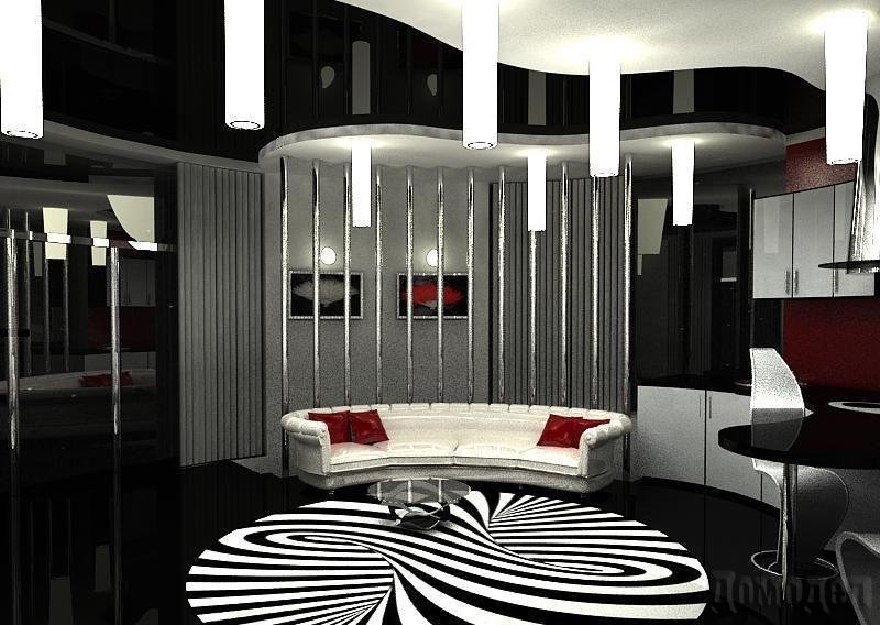 Для помещений коллективного плана, к примеру, в залах ресторанов либо на выставочных площадках можно встретить многоуровневые потолки. Они помогают визуально разделить место на зоны обслуживания. Наилучшим вариантом будет прекрасное комбинирование светлого и черного или любого другого темного глянца. Таким образом, разместив светло-коричневые панели над столиками, а темновато-бронзово-шоколадные — над проходами, вы получите атмосферу комфорта и определенной приватности для любого гостя.