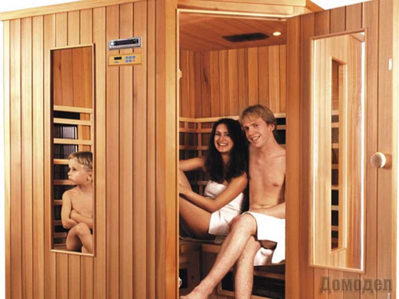 Сегодня обычная угловая сауна, благодаря довольно небольшим и очень компактным размерам, может поместиться даже в очень небольшой квартире. Данная сауна работает по принципу воздействия инфракрасных лучей.