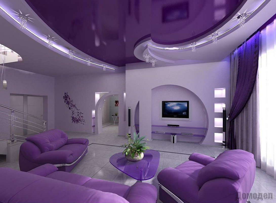 Натяжные потолки также могут отлично смотреться, так как выполнены в самых разнообразных оттенках. В том случае, если к потолку грамотно подобрана люстра, то потолок замечательно выглядит в сочетании с отличным освещением, которое и порадует своей практичностью. При этом натяжной потолок предоставляет все возможности создавать и дополнительные источники освещения. Для оригинальности можно воспользоваться освещением различного оттенка.