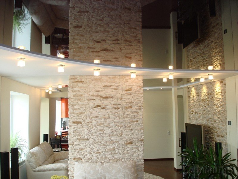 А также такой потолок сделает помещение более светлым, свободным, торжественным.