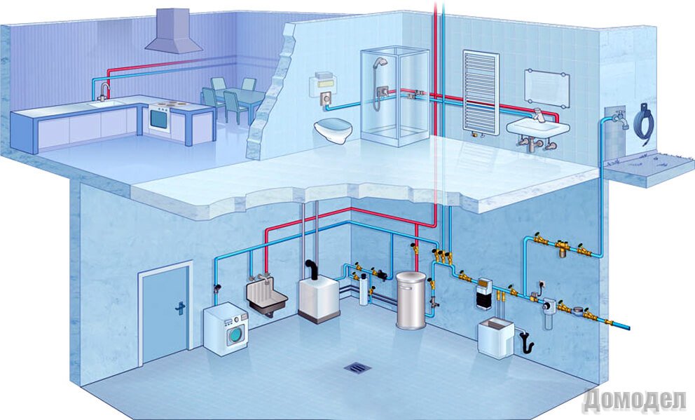Для закрытого типа используется дополнительный теплообменник, в котором холодная питьевая вода смешивается с сетевой водой и, нагреваясь, поступает непосредственно к пользователю. В открытой системе центральное место занимает циркулирующий теплоноситель. Из теплосети открытые краны передают горячую воду потребителю. Такой тип является более экономичным, так как не предусматривает эксплуатацию водонагревателей . Современная система водоснабжения обустраивается за счет применения пластиковых, стальных или медных труб.