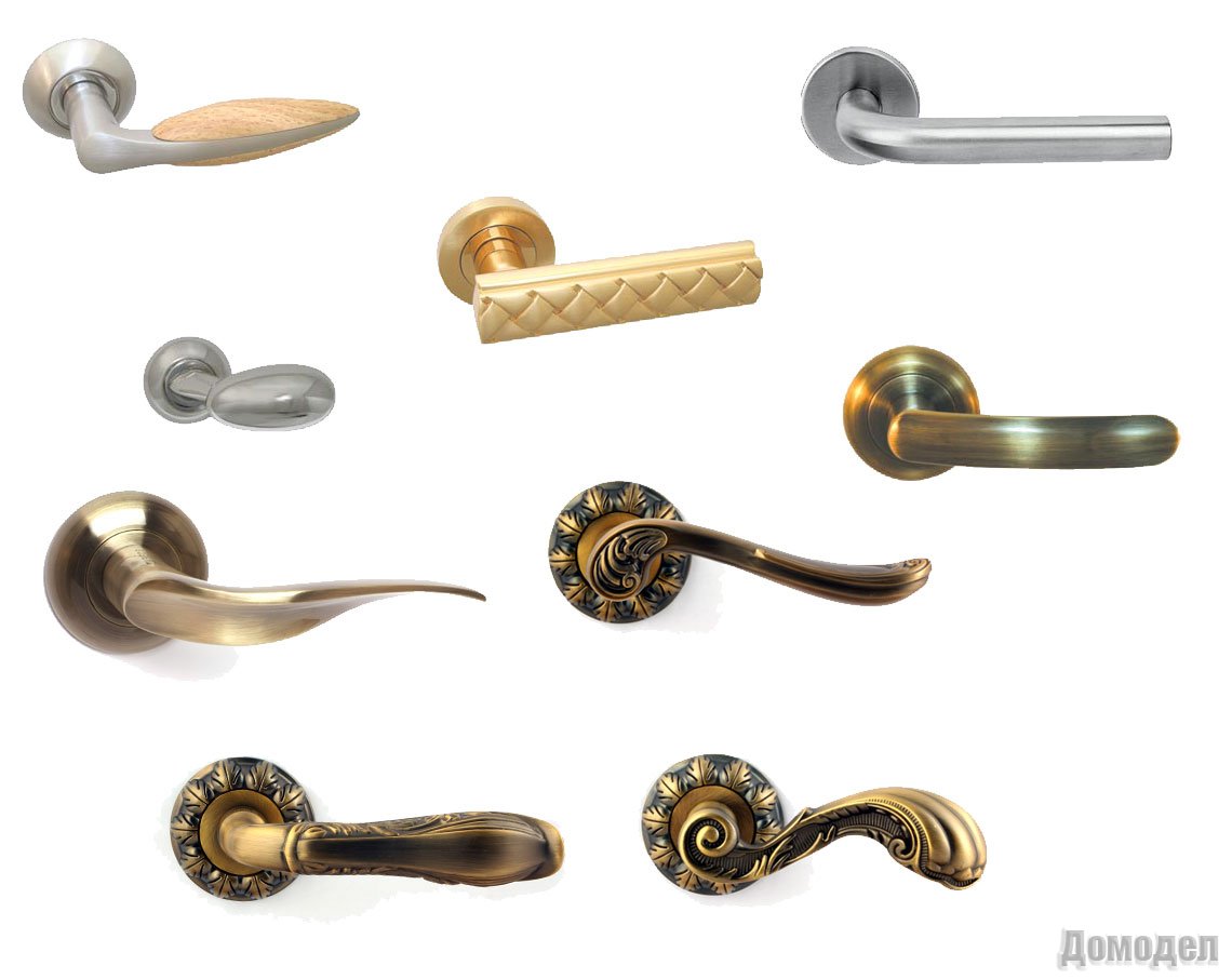 По вашему желанию и вкусу. При этом тонкостей здесь очень много. Подвести к общим правилам, по сути, нельзя, так как у каждой фирмы свои стандарты. Вплоть до того, что накладки могут не входить в общий комплект. Неплохой вариант ручек – нобы. По форме они напоминают шар, посреди которого размещается замочная скважина. Эта конструкция представляет собой и ручку и замок. Кнопка, расположенная в центре является блокировкой двери. Это оригинальный вариант для ванной и туалета, когда закрывать дверь возникает необходимость изнутри. Часто такого рода ручки используют в гостиницах и отелях. Защелка иногда обладает функцией вверх-вниз по принципу открыть-закрыть. Стационарные ручки мы привыкли видеть повсеместно и везде. И они бывают разной формы и размера.