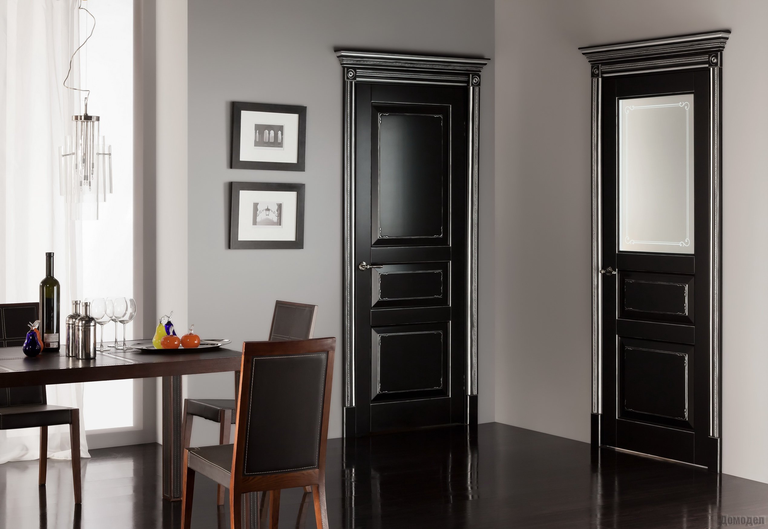 Нелишне заметить, что двери в черном цвете несомненно смотрятся изысканно и пикантно. Так как сразу в глаза бросается все необычное, то черные двери как раз и представляют собой тот самый элемент дизайна, который придает обстановке особенный вид. К тому же любая фурнитура на черных дверях смотрится гораздо великолепней и богаче. Двухстворчатая черная дверь с позолоченной фурнитурой, создает впечатление роскошного дорогого интерьера.