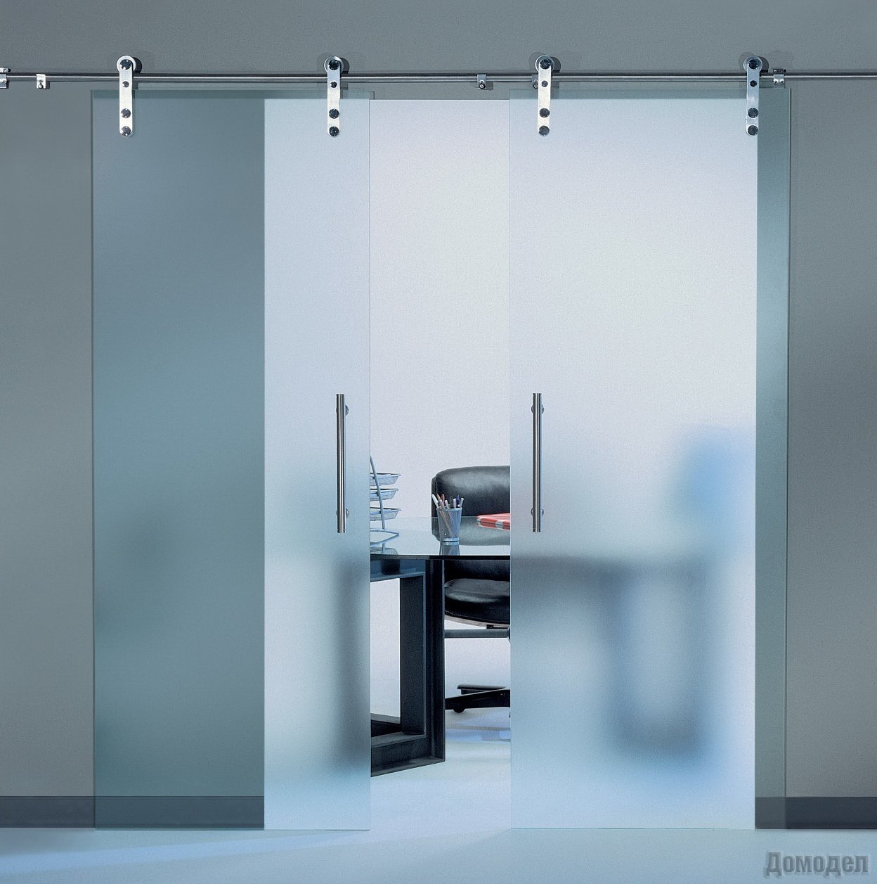 Чаще всего в производстве используют закаленное стекло, материал для которого изготовляется определенным способом, ну и в конечном результате оно станет более эластичным, прочным и не рассыплется на осколки. Существует еще один вид стекла, называется триплекс. Он состоит из листов стекла, скрепленных полимерной пленкой. Если, к примеру, стекло разобьется, подвергнувшись физическому воздействию, то все осколки будут заключчены внутри полимерной пленки. Поэтому такой вид стекла считается самым безопасным. При выборе стекла стоит обратить внимание на то, как открывается дверь. Для офисов подойдут распашные или раздвижные двери. Их зачастую используют внутри, так как открываются они только в одну сторону. Раздвижные двери, помогут скрыть недостаточность места в помещении. Они открываются с верху в низ, двигаясь по специальным рельсам и прикрепляются сверху к потолку и снизу к полу. Есть еще и маятниковый способ открытия двери. Благодаря специальному механизму, они отодвигаются в любую сторону, плавно и бесшумно.