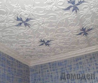 - Широкий выбор вариантов дизайна. Уже сама по себе пенопластовая плитка обладает интересным внешним видом. На ней присутствует презентабельный рельеф. Но при этом владелец способен самостоятельно выбрать оттенок материала, поскольку потолок из пенопласта получится легко перекрасить.