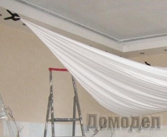 Таким образом, если вы будете иметь соответственный материалы и сделаете все правильно и по вышеуказанных этапах, то в итоге вы получите эластичный натяжной потолок, который не будет практически ни чем отличаться в качестве от потолка, установленного мастером.