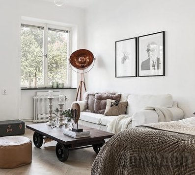 Скандинавский стиль – просто спасение для малогабаритных квартир. Минимальное количество предметов мебели, светлые стены и потолок, открытое оконное пространство и светлые сорта деревянных покрытий подарят комнате воздушность и расширят ее границы.