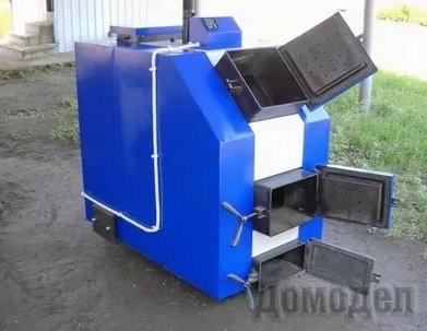 Модели, изготовленные на производстве, состоят из металлического цилиндра с дверцей. Обязательно предусмотрены температурный датчик и датчик давления, приборы для управления, выводы отопительного контура и электросети, дымоход. Можно приобрести универсальную модель, работающую на разных видах топлива.