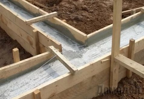 2. Проводится отмостка и укладывается один или несколько слоёв гидроизоляционного материала. Это делается для защиты фундамента от влаги – отводит или не пропускает её.