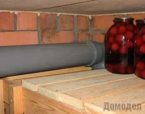 Труба для притока начинается над полом террасы или над уровнем почвы, опускаясь через перекрытие и заканчиваясь примерно на 20-50 см от пола помещения. Отверстие в верхней части нужно закрыть с использованием специальной сетки, чтобы не смогли пробраться грызуны. Трубу советуется устанавливать в углу пространства погреба, а вытяжную, нужно монтировать в углу по диагонали от 1-й трубы. Потребуется, чтобы труба, работающая на вытяжку, начиналась ниже поверхности потолка, и шла через перекрытие, а также перекрытие чердака. Закончиться она должна на 40 сантиметров располагаться выше уровня конька сооружения. Если терраса выполнена отдельно от него, то в таком случае эту трубу потребуется вывести приблизительно на 40 см выше уровня конька террасы.