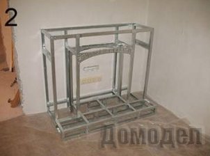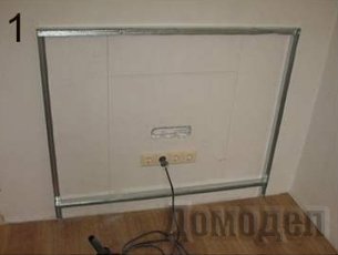 Когда выполнены предыдущие действия, нужно перенести чертеж на стену. По этому чертежу собрать заднюю часть каркаса для визуализации будущего камина.